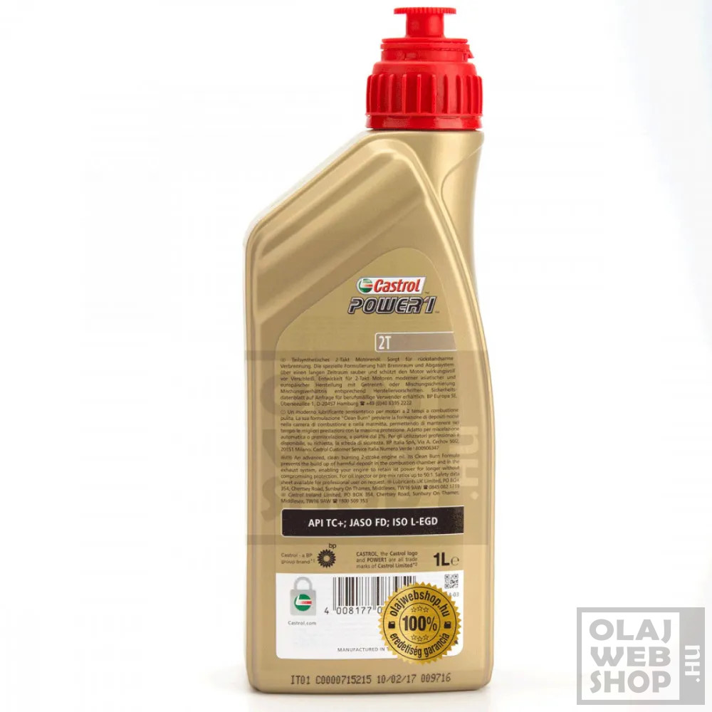 A Castrol Power1 2T egy prémium minőségű, részben szintetikus motorolaj, amelyet a modern, nagyteljesítményű kétütemű motorkerékpárokhoz, robogókhoz és más kétütemű motorokhoz fejlesztettek ki. Az olaj formulája úgy lett kialakítva, hogy a motor a lehető legjobb teljesítményt nyújtsa.