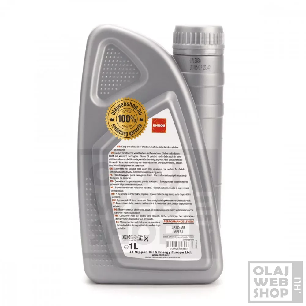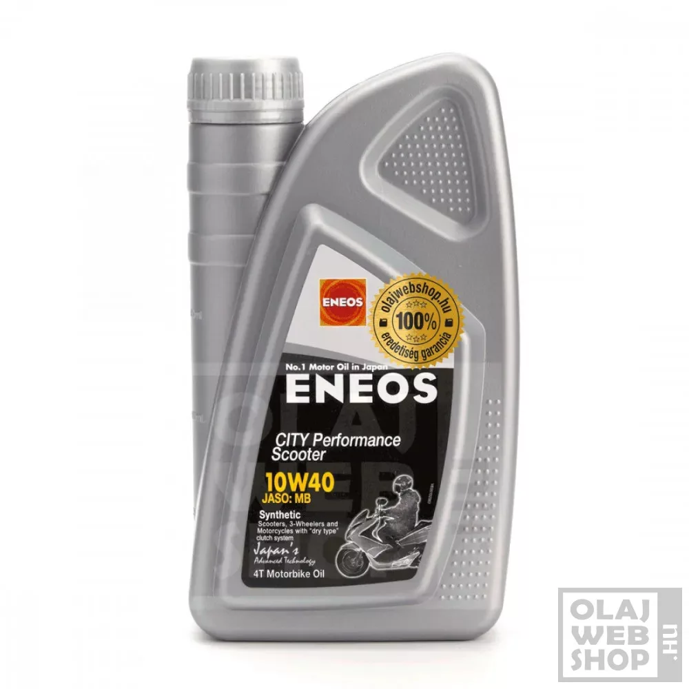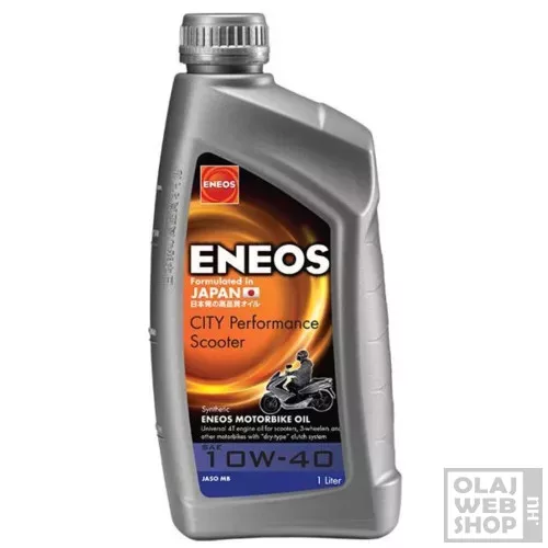 Eneos City Performance Scooter 4T 10W-40 nagy teljesítményű olaj, amit robogókhoz, maxi- robogókhoz, illetve szárazkuplungos, 4-ütemű motorral szerelt, katalizátoros vagy anélküli motorkerékpárokhoz fejlesztettek ki. Bármelyik városi forgalomban futó robogóhoz alkalmazható. Szintetikus alapolajának köszönhetően kiváló védelmet biztosít extrém körülmények között is, hideg indításnál, rövid és hosszú városi úton, magas hőmérsékleten és a motor üresben járatásakor a jelzőlámpák előtt és a közlekedési dugókban. Arra tervezték, hogy alacsony olaj és üzemanyag fogyasztás mellett is kiválóan védje a motort.