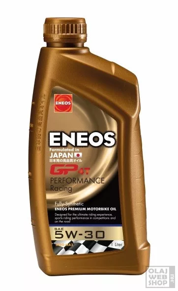 Az ENEOS GP4T Performance Racing kimagaslóan nagy teljesítményű, teljes mértékben szintetikus motorolaj, 4-ütemű motorkerékpárok számára. A nedves vagy szárazkuplungos, nagy sebességgel és magas hőmérsékleten üzemelő motorkerékpárok számára. Maximális teljesítményt nyújt a váltás, gyorsulás, erőnyomaték és a gázadásra adott azonnali válasz tekintetében, maximális motorvédelem mellett.Az ENEOS GP4T Performance Racing gondosan kiválasztott innovatív teljesítmény-formulákat a japán motorkerékpárokhoz, hogy a motor maximális teljesítményt és nyomatékot érjen el, a maximális üzemanyag-megtakarítás és a kompromisszummentes védelem mellett.