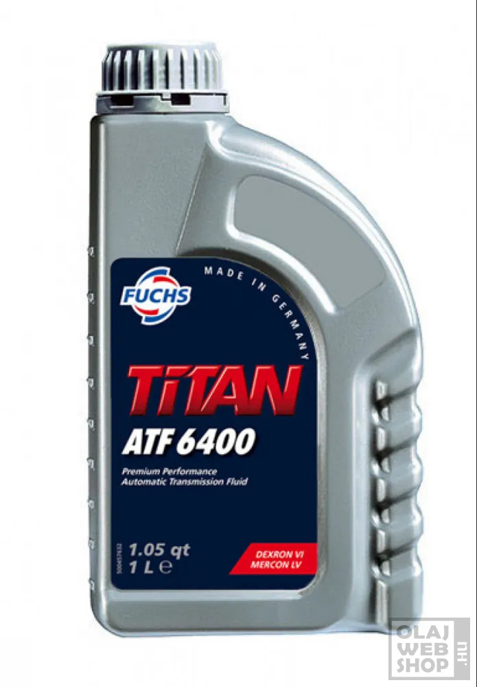 A Fuchs Titan ATF 6400 egy prémium teljesítményű hajtóműolaj automata váltókhoz. Csökkentett viszkozitású, kifejezetten a japán és az amerikai gyártók automatikus sebességváltójához lett tervezve. Engedélyezve a DEXRON VI és a MERCON LV szerint.