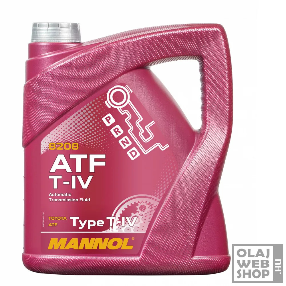 A Mannol 8208 ATF T-IV egy speciális szintetikus sebességváltó folyadék (ATF) TOYOTA/LEXUS járművek új generációs TOYOTA és AISIN AW váltóval ellátott automata sebességváltóihoz. Biztosítja az automata sebességváltó hibátlan működését, garantálja a minimális kopást, a sebességváltók tartós élettartamát és az üzemanyag-takarékosságot. Az AISIN WARNER cég által meghatározott követelmények alapján lett kifejlesztve.