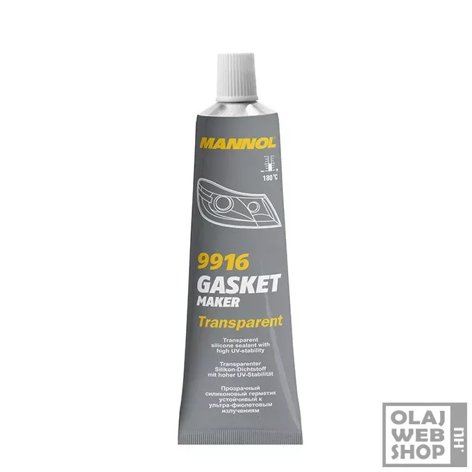A Gasket Maker Transparent egy szobahőmérsékleten megszilárduló színtelen tömítőanyag. Rendkívül ellenálló a magas hőmérsékletekkel szemben. Megbízható tömítést hoz létre, amely nem repedezik, zsugorodik vagy mozdul el hirtelen hőmérsékletváltozások hatására. Helyettesíti az O-gyűrűket, alátéteket, valamint azbeszt, gumi, filc, papír, parafa és fém tömítéseket. Hatékonyan használható: szelepvezető perselyek, olajteknő, termosztátházak stb. javítására. Ellenáll a kenőanyagoknak, hűtőfolyadékoknak, benzinnek, kerozinnak, víznek, savaknak és lúgoknak. Könnyen alkalmazható és rugalmas marad. A kezelendő felületet zsírtalanítani kell.