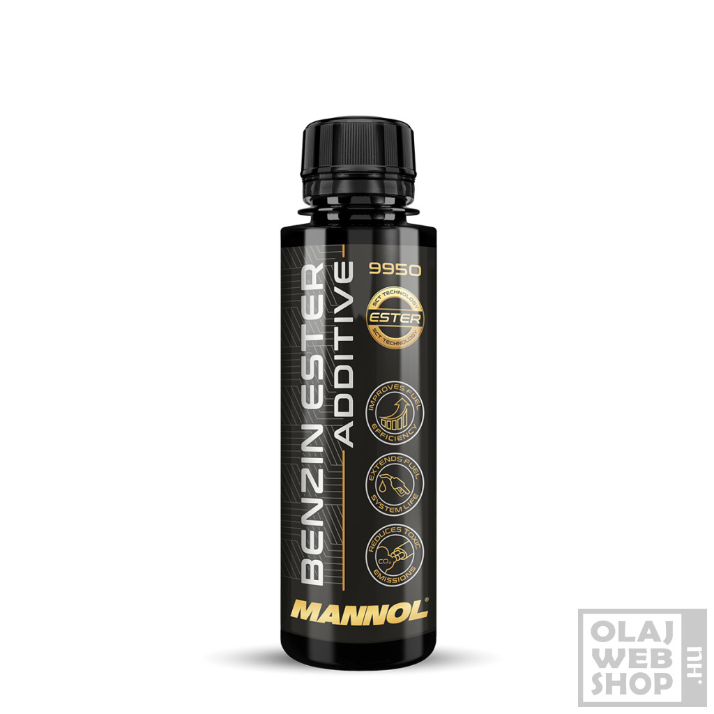 A Mannol 9950 Benzin Ester Additive észteres benzinadalék a legújabb fejlesztés - kenőadalék a benzinben. A benzinmotorok minden típusú üzemanyagrendszeréhez, elsősorban - a hengerekbe közvetlen üzemanyag-befecskendezéssel ellátott motorokhoz. (A dízelmotoroknál korábban már bevezettek egy ilyen teljesítményrendszert, és megmutatta hatékonyságát, de számos problémát is találtak, amelyek az üzemanyagrendszer mozgó fém alkatrészeinek, és különösen a nagynyomású üzemanyagszivattyúnak a kenés minőségének hiányával kapcsolatosak.) Ez egy többfunkciós és kiegyensúlyozott adalékanyag-csomag megfelel a legmodernebb követelményeknek, bármilyen benzinüzemanyaggal kompatibilis, könnyen keverhető vele és teljesen feloldódik, és garantáltan javítja bármely kereskedelmi forgalomban kapható benzinüzemanyagot, még akkor is, ha az etanolt tartalmaz, a legjobb fogyasztói tulajdonságokkal ruházza fel, az úgynevezett "márka" üzemanyag rangjára emelve. A kereskedelmi forgalomban kapható AI-95-ös benzin kenhetőségének vizsgálatakor a kopófolt átmérőjének több mint kétszeres csökkenését tapasztalták, amikor az adalékanyagnak csak 0,1%-át juttatták az üzemanyagba (1 liter adalékanyag 1000 liter benzinre). Ezenkívül az adalék súrlódásmódosító és gyújtásfokozó hatású, ami növeli az üzemanyag elégetésének teljességét és csökkenti a szénlerakódások kialakulását az égéstérben. Az adalék rendszeres használatával javul a motor teljesítménye és jelentős üzemanyag-megtakarítás érhető el (2-5%).