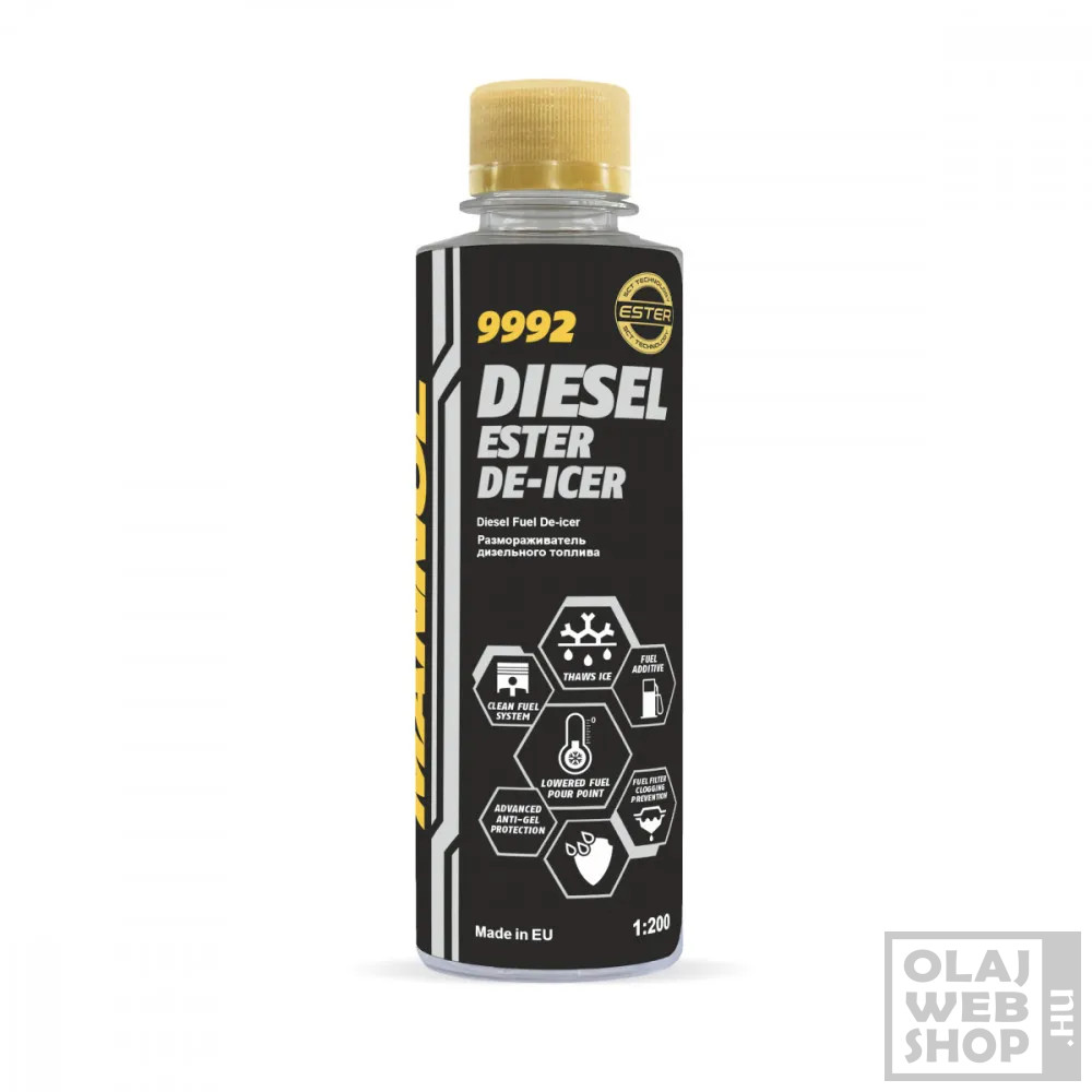 Finom és durva üzemanyagszűrők le- és kiszerelése. Távolítsa el belőlük a megdermedt üzemanyagot. Öntse a flakon tartalmát 1:1 arányban gázolajjal keverve a szűrőkbe. Tegye vissza a szűrőket a helyükre. Ezután keverje az adalékanyagot az üzemanyagtartályba 1 rész 200 rész üzemanyaghoz viszonyított arányban. Várjon 15-20 percet, amíg a megdermedt dízelüzemanyag feloldódik, majd indítsa be a motort. A 0,25 literes flakon 50 liter üzemanyagra elegendő. A jövőben minden tankoláskor javasoljuk a MANNOL Winter Diesel (antigél) használatát, hogy megakadályozza az üzemanyag megalvadását. Az üzemanyag típusától és a hőmérséklettől függően az adalékanyag hatékonysága eltérő lehet. Javasoljuk, hogy legalább 0,5 liter terméket vásároljon egyszerre.