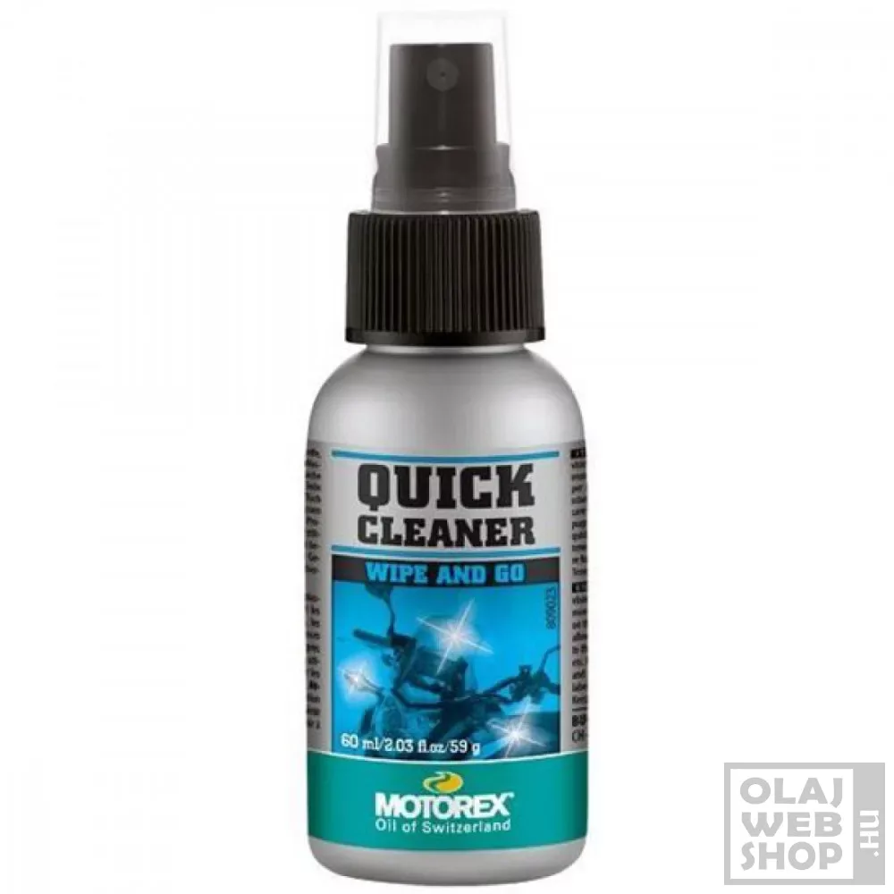 A Motorex Quick Cleaner egy vízmentes tisztítószer, amely a gyors és gyengéd tisztítás a fantasztikusan tiszta eredményért lett kifejlesztve. A Motorex Quick Cleaner nem igényel további vizet! Kiválóan alkalmas műanyag, üveg, festék, fém, szélvédő felületekre. A 360°-os permetező rendszerrel a Motorex Quick Cleaner minden helyzetben használható.