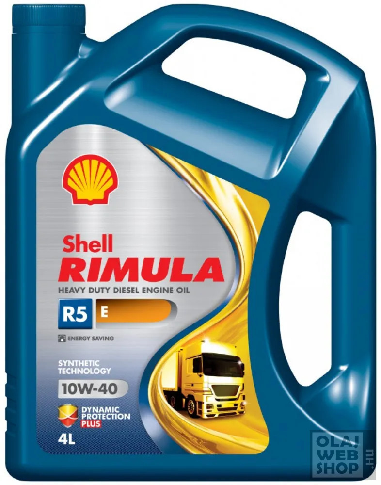 A Shell Rimula R5E 10W-40 nagy teljesítményű motorolaj dízelmotorok részére, amit úgy terveztek, hogy háromszoros védelmet biztosítva növelje a motor és az olaj tartósságát. Elősegíti a karbantartási költségek csökkentését és növeli a jármű megbízhatóságát. Megfelel a legtöbb olyan nagy igénybevételnek kitett nagy teljesítményű régebbi dízelmotorhoz, amely terepi és országúti járműben üzemel.